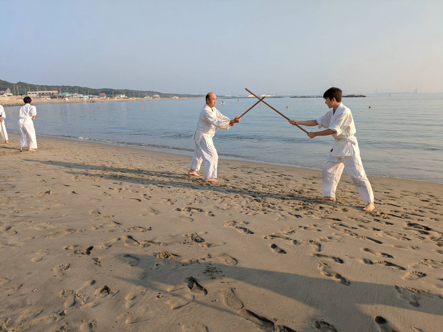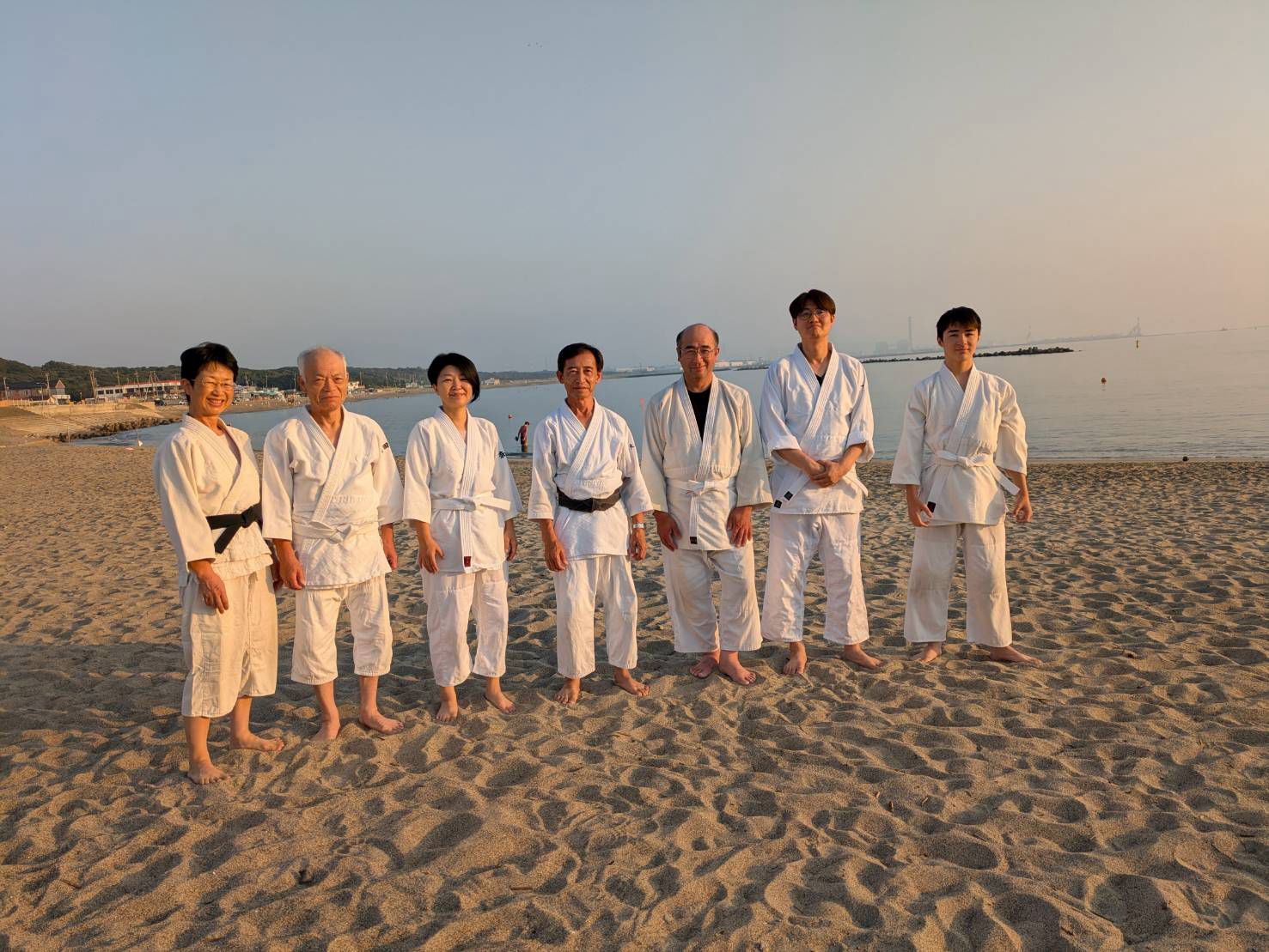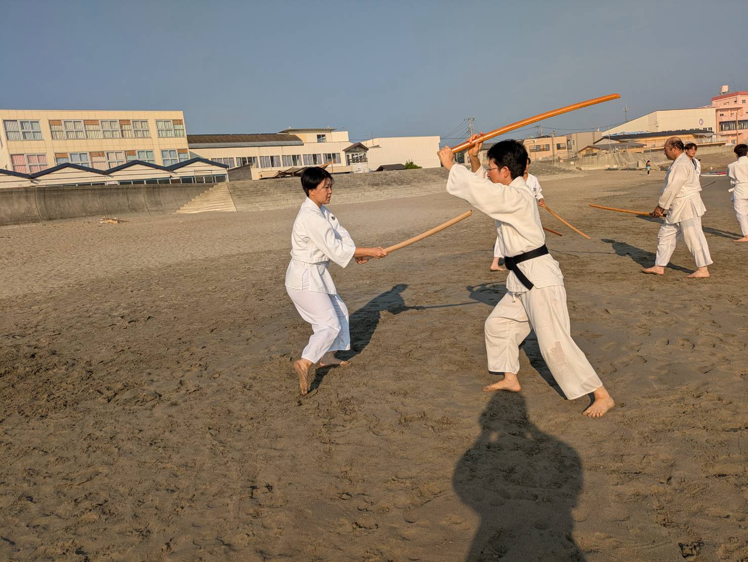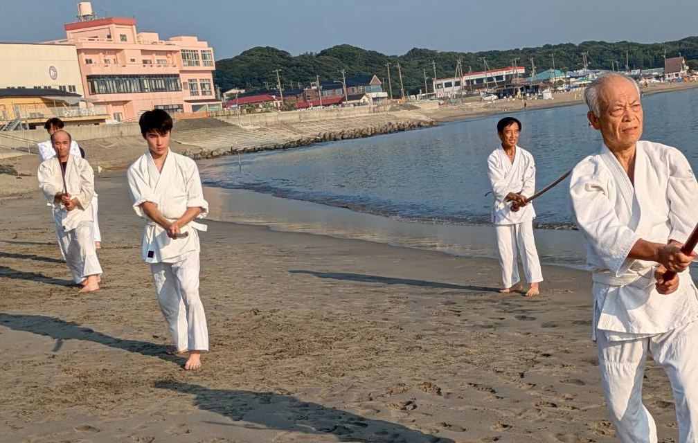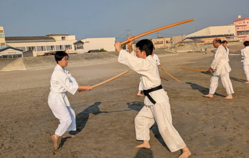 砂浜での稽古は足運びが難しかったものの、自分の動きを見つめ直す良い機会となりました。