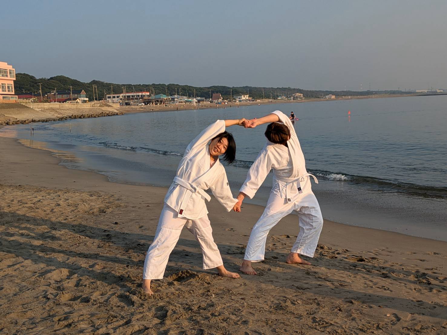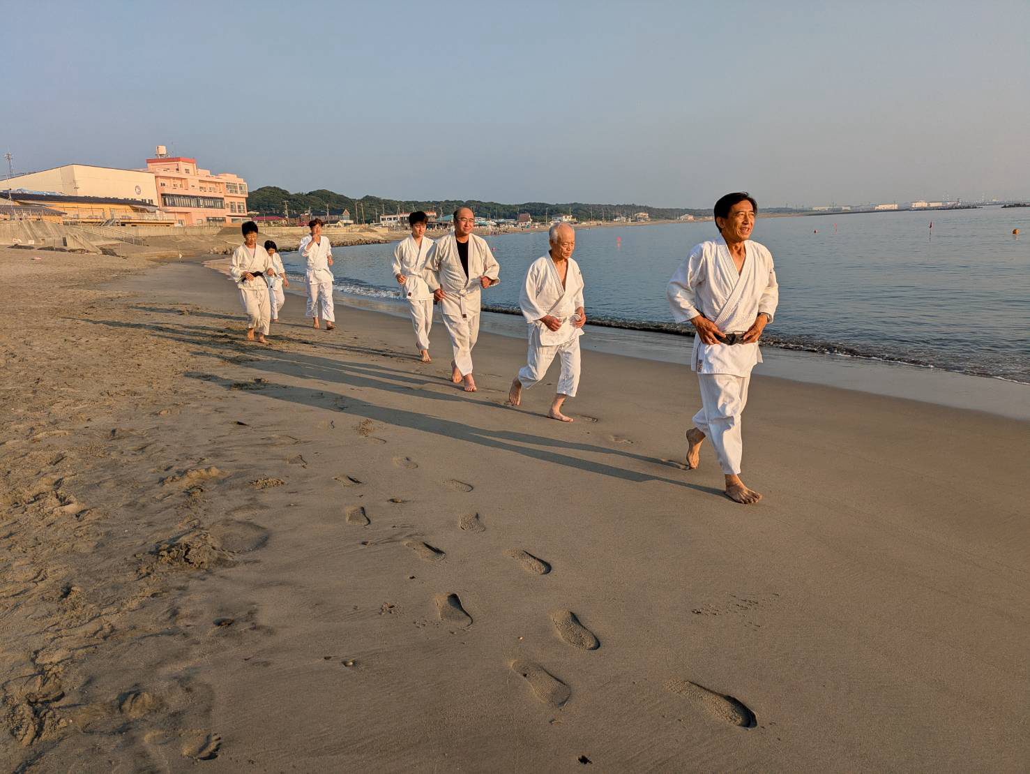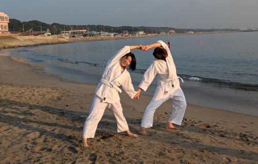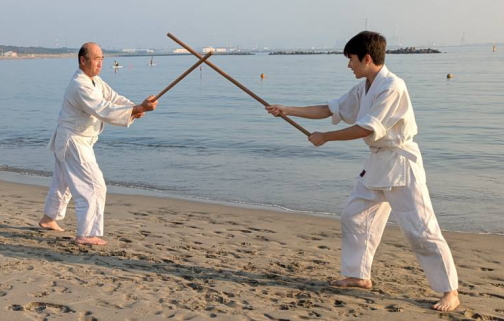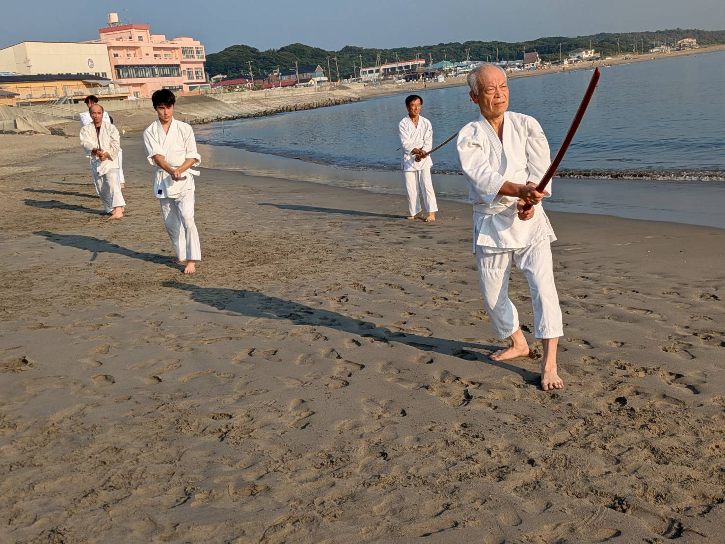砂浜での稽古は足運びが難しかったものの、自分の動きを見つめ直す良い機会となりました。
