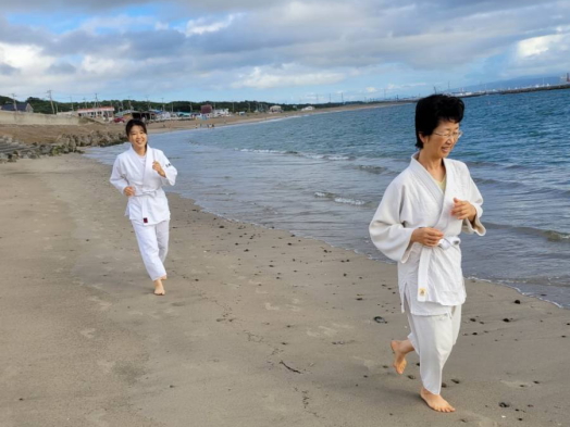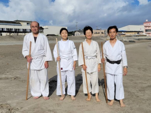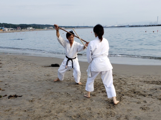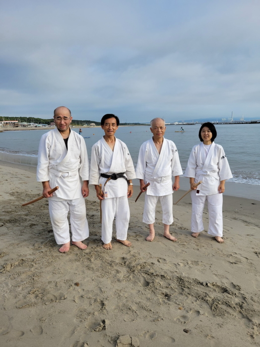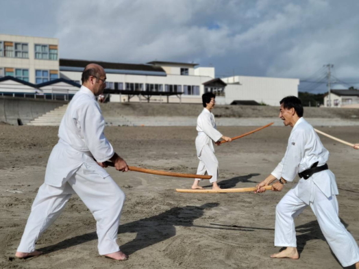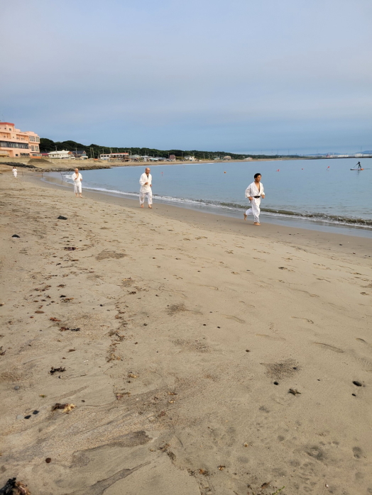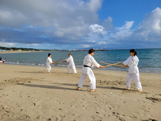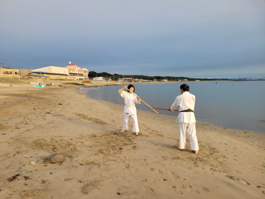砂浜での稽古は足運びが難しかったものの、自分の動きを見つめ直す良い機会となりました。